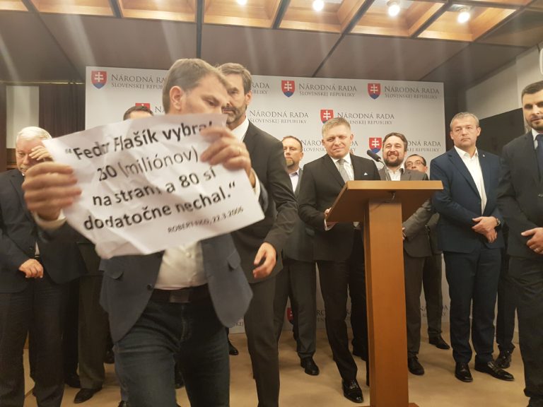 Strkanica medzi Igorom Matovičom a Jurajom Blanárom na tlačovej konferencii v NR SR. Foto: Webnoviny.sk/Pavel Urban