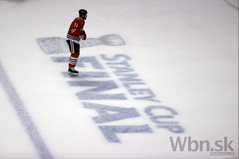 Útočník Chicaga Andrew Desjardins sa rozcvičuje pred tretím finálovým zápasom NHL, v ktorom jeho tím prehral s Tampou Bay 2:3. Chicago, 8 jún 2015. Foto: SITA/AP