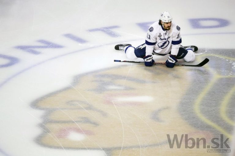 Obranca Tampy Bay Victor Hedman sa rozcvičuje pred tretím finálovým zápasom NHL, v ktorom jeho tím zvíťazil na ľade Chicaga 3:2. Chicago, 8 jún 2015. Foto: SITA/AP