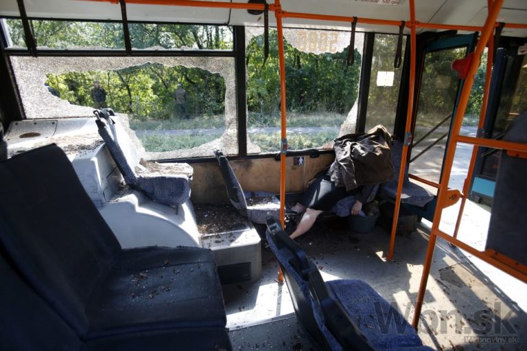 Mladík prikrýva telo svojej matky zabitej pri útoku na autobus v Donecku na východe Ukrajiny. Foto: SITA/AP