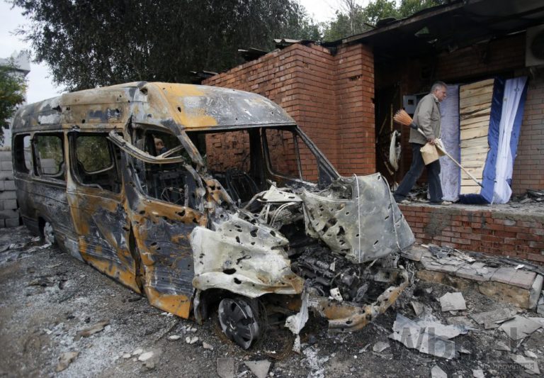 Krehké prímerie uzavreté v septembri medzi ukrajinskými vládnymi silami a proruskými separatistami je prerušované ostreľovaním. Boje si vyžiadali ďalšie nové obete na životoch. Celkovo si konflikt už vyžiadal viac než 3000 obetí, tisíce ľudí museli pred bojmi utiecť. Foto: SITA/AP