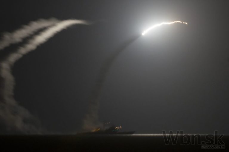 Vypálená strela tomahawk z americkej lodi proti islamistom. Letectvo Spojených štátov a viacerých arabských krajín oštartovalo 23. septembra 2014 leteckú operáciu proti Islamskému štátu na severozápade Sýrie pri hraniciach s Irakom v oblasti, ktorú ovládajú povstalci. USA a Francúzsko už predtým bombardovali džihádistov v Iraku, pridať sa k týmto snahám chcú postupne aj ďalšie krajiny. Foto: SITA/AP