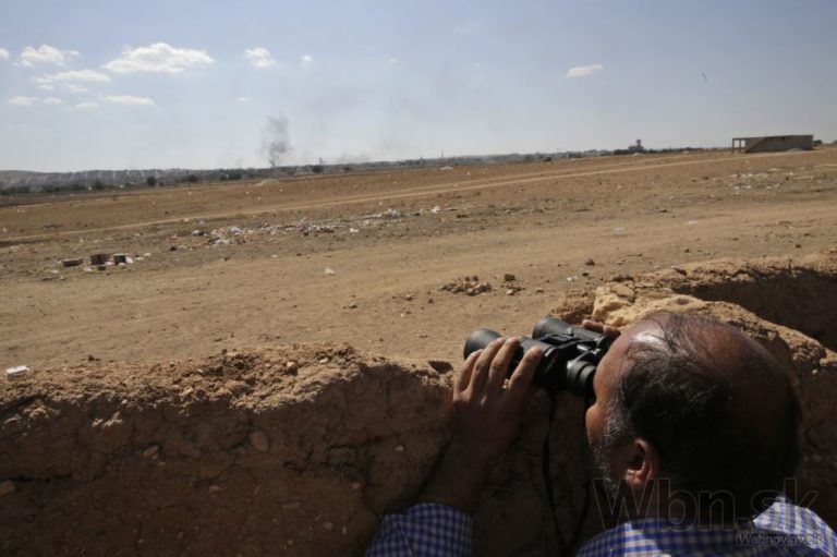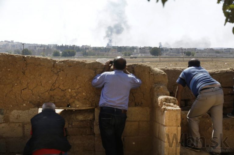 Američanmi vedené nálety v Sýrii vytlačili bojovníkov Islamského štátu na okraj kurdského mesta Kobani. Turecký prezident Recep Tayyip Erdogan v utorok vyjadril obavy, že Kobani v najbližšom čase ´padne´ do rúk IŠ a dodal, že skupina sa nedá poraziť iba leteckými náletmi (Turecko-sýrske hranice, 8. októbra 2014). Foto: SITA/AP