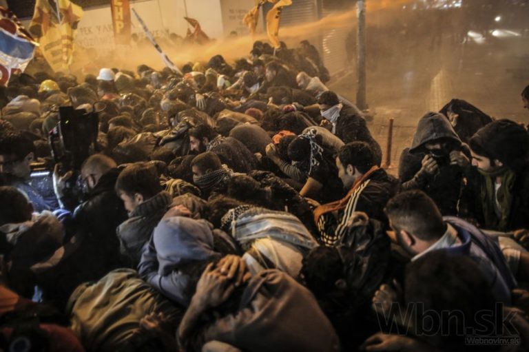 Kurdi počas ilegálnych protestov opakovane žiadajú Turecko, aby pomohlo odvrátiť pád Kobani. V najväčšom juhovýchodnom kurdskom meste Diyabakir zahynulo počas demonštrácií osem ľudí, ďalší zomreli pri zrážkach s políciou vo východných provinciách Mus, Siirt a Batman (Turecko, 7. októbra 2014) Foto: SITA/AP
