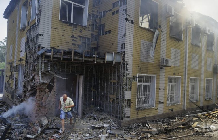 V Donecku pokračujú boje aj napriek vyhláseniu nového premiéra samozvanej Doneckej ľudovej republiky Oleksandra Zacharčenka, že povstalci sú ochotní pristúpiť na prímerie, aby odvrátili humanitárnu katastrofu. Foto: SITA/AP