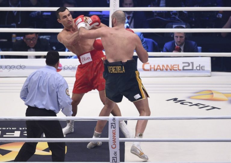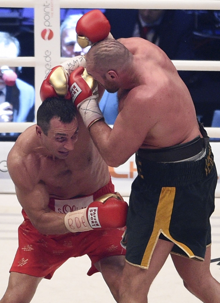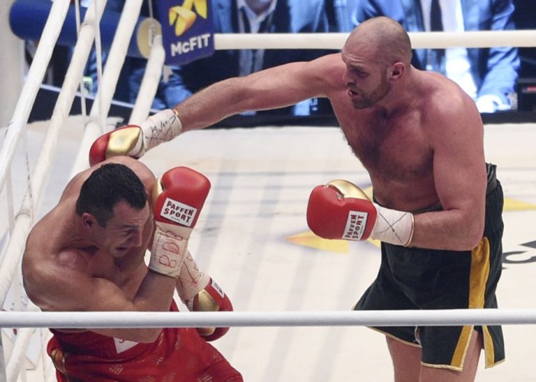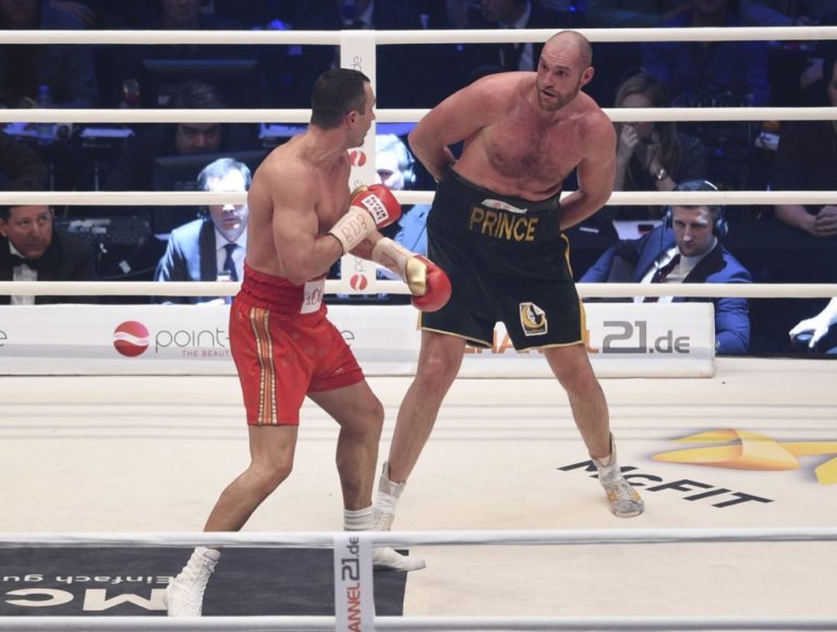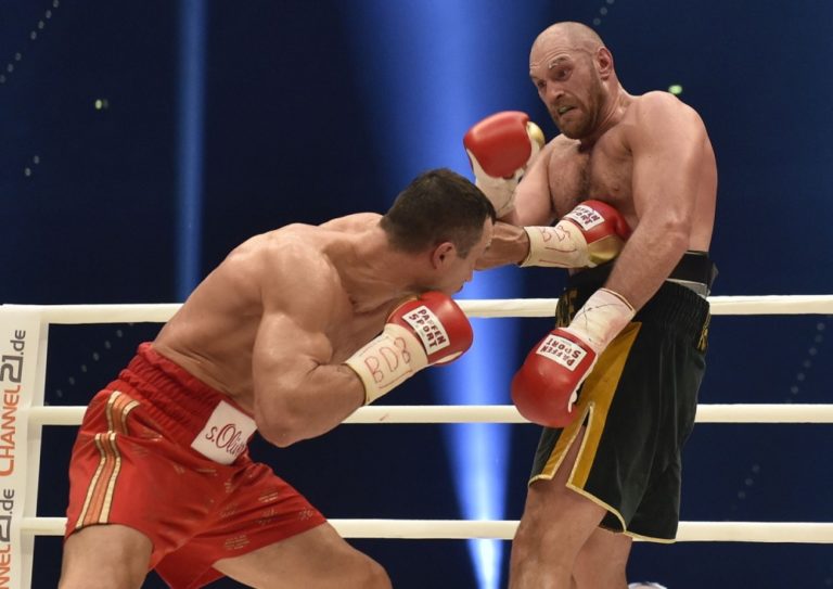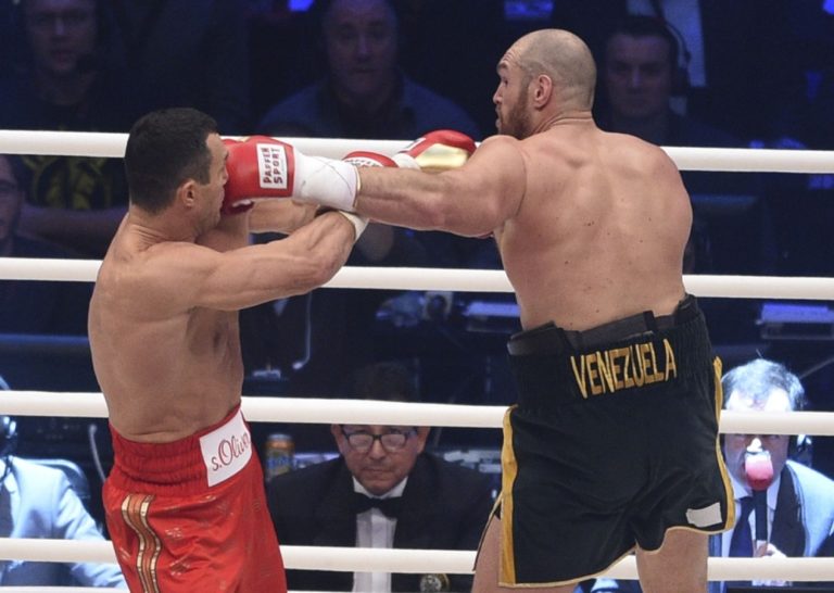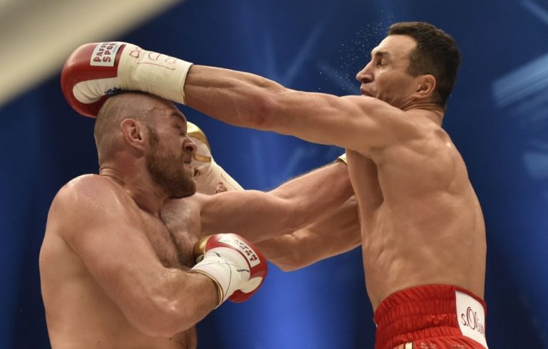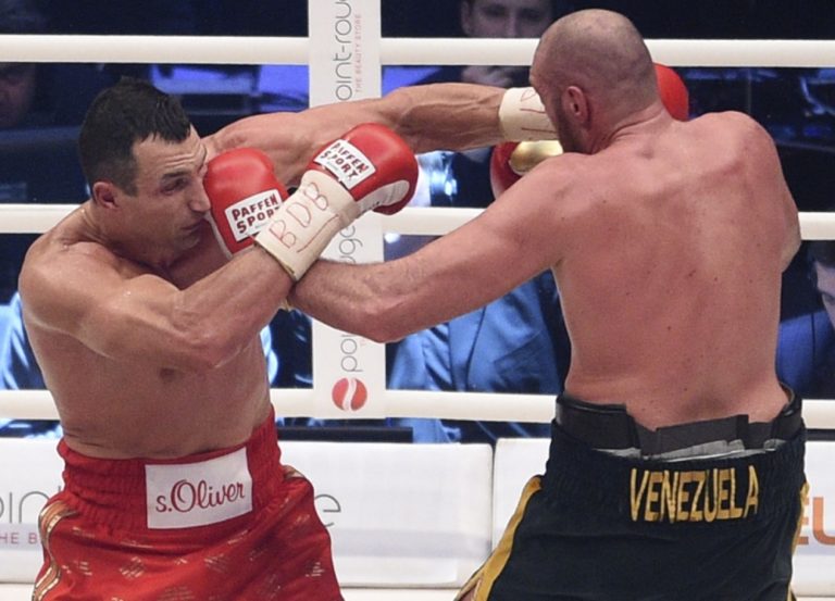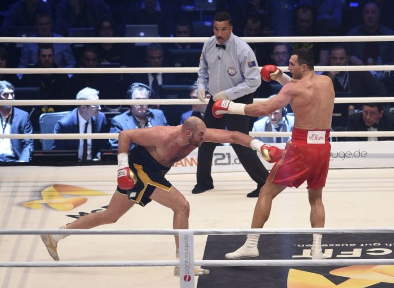 Vladimir Kličko v súboji s Tysonom Furym o titul v superťažkej hmotnostnej kategórii. Foto: SITA/AP