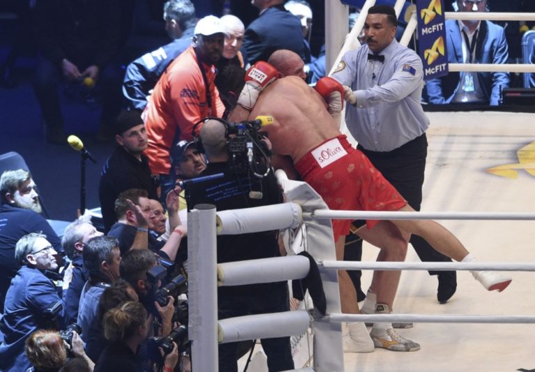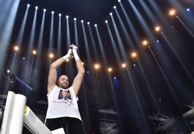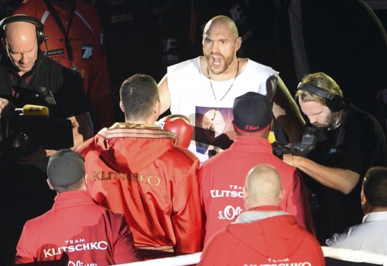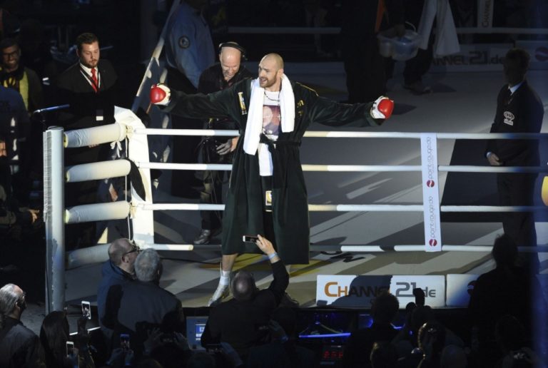 Tyson Fury v ringu pred zápasom proti Vladimirovi Kličkovi. Foto: SITA/AP