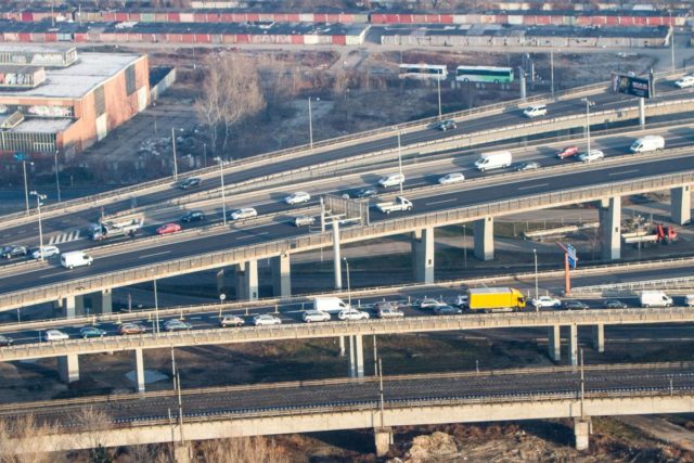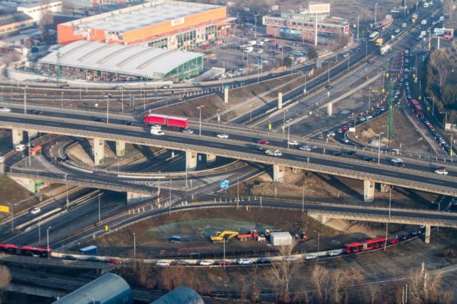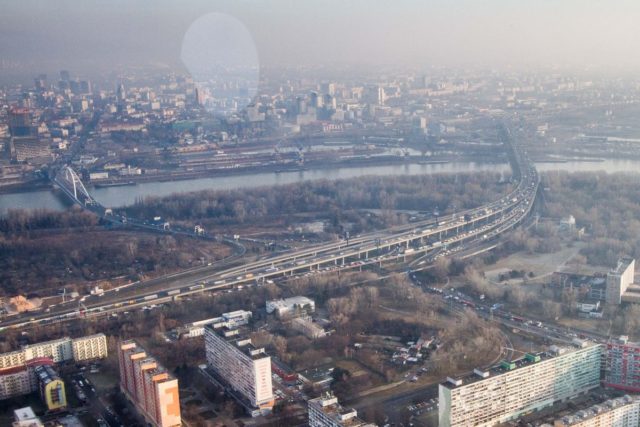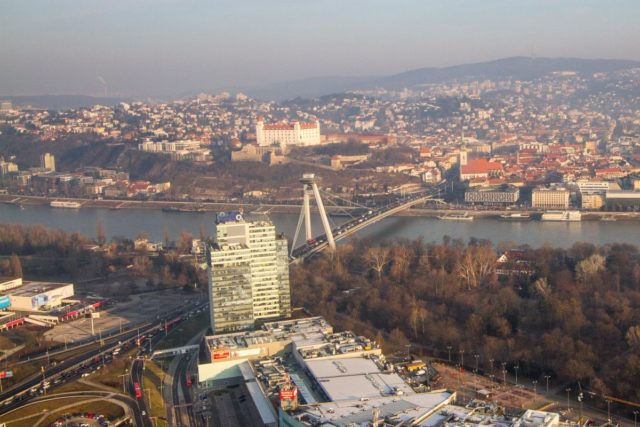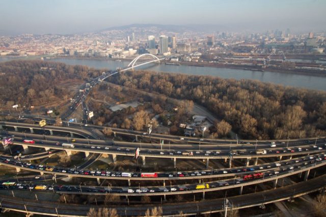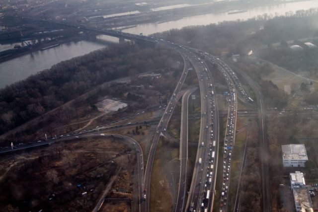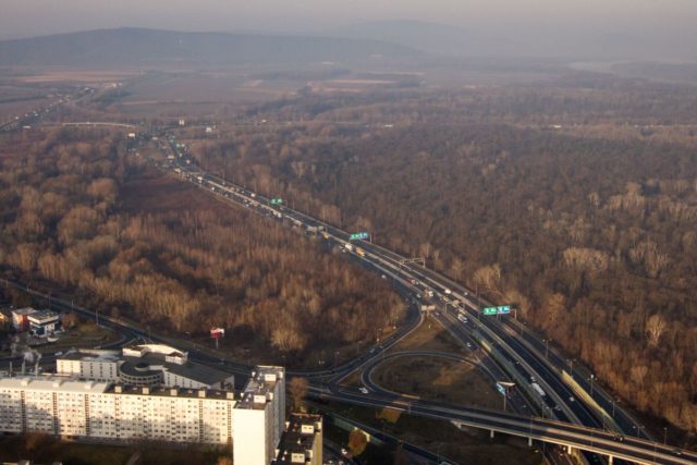 Foto: SITA/Ľudovít Vaniher Pohľad na cesty v Bratislave z vrtuľníka letky MV SR