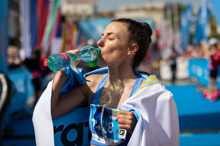 Prvá žena v cieli Nataša Šustić z Chorvátska počas bežeckého podujatia Bratislava Marathon 2024. Bratislava, 7. apríl 2024. Foto: SITA/Jana Birošová