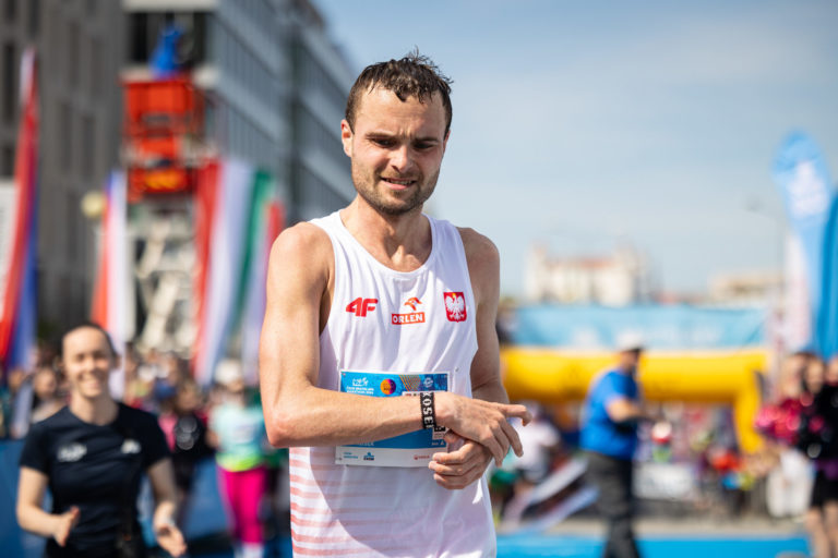 Prvý muž v cieli Pawel Kosek z Poľska počas bežeckého podujatia Bratislava Marathon 2024. Bratislava, 7. apríl 2024. Foto: SITA/Jana Birošová