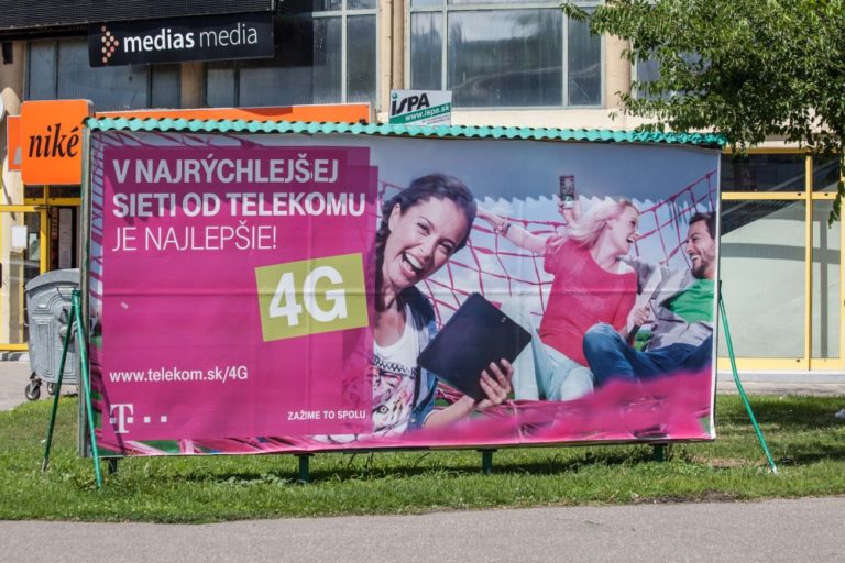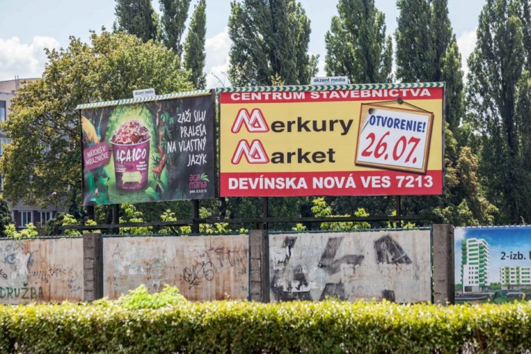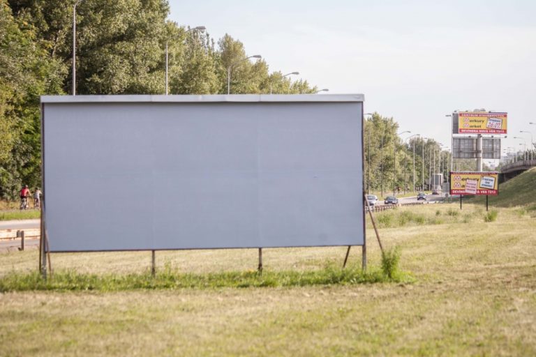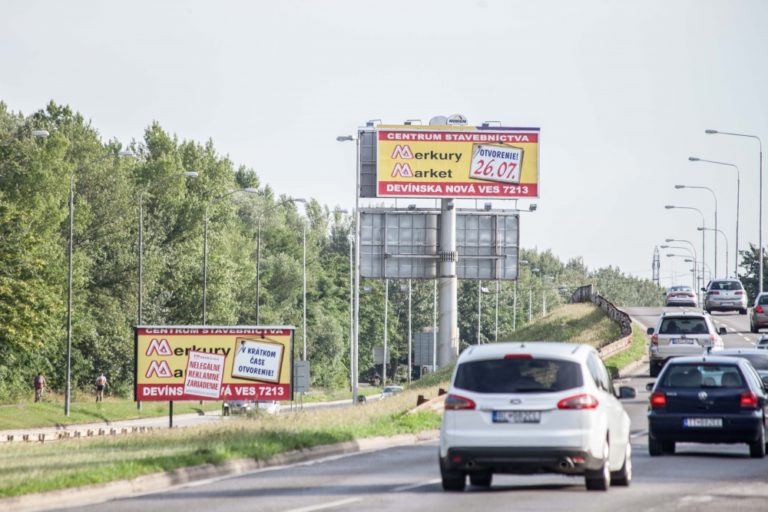 Veľkoplošné reklamné tabule (bilbordy) určené na vonkajšiu reklamu sú umiestnené spravidla pri diaľniciach a cestách. Bratislava, 15. júl 2014. Foto: SITA/Katarína Acelová