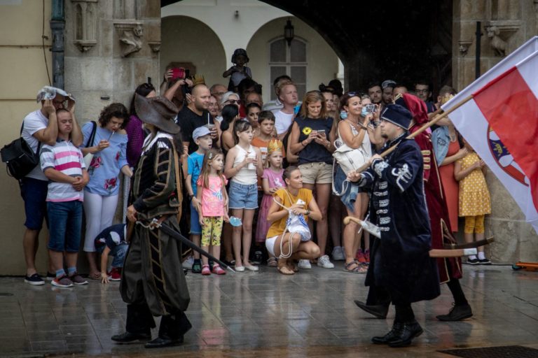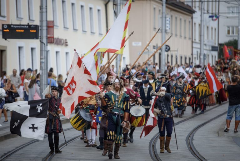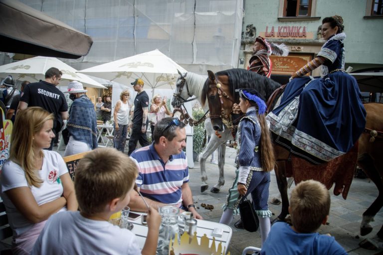 Korunovačný sprievod Maximiliána II. Habsburskéhoo na Kapucínskej ulici počas podujatia Bratislavské korunovačné dni 2020 v rámci osláv kráľovskej minulosti Bratislavy. Bratislava, 16. august 2020. Foto: SITA/Branislav Bibel