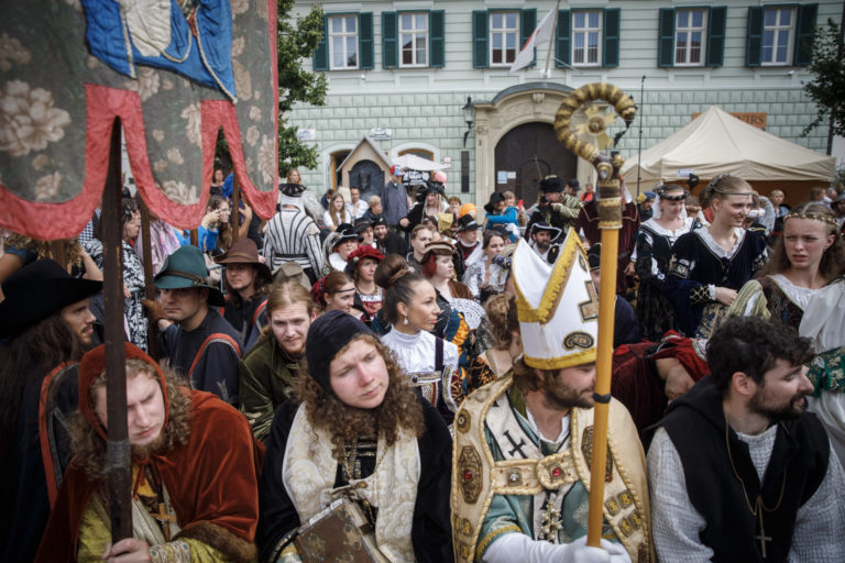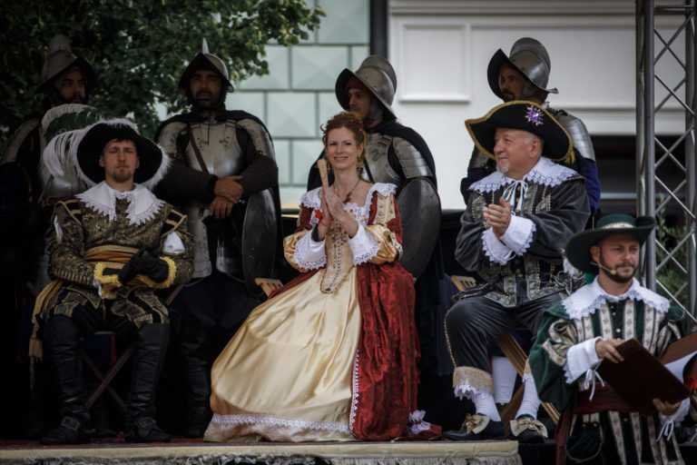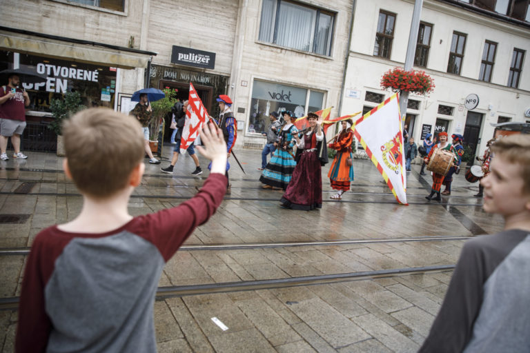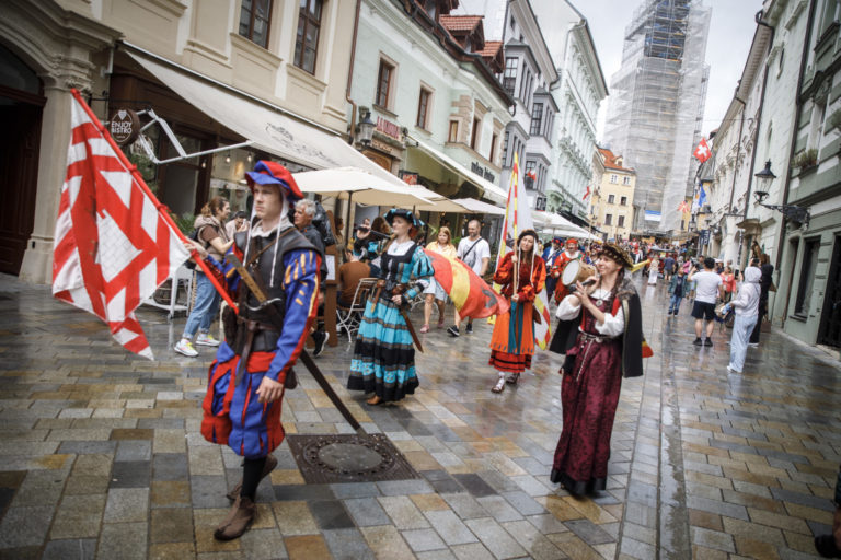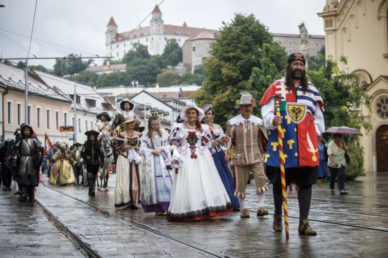 Účastníci počas podujatia Bratislavské korunovačné dni 2022 v uliciach hlavného mesta. Bratislava, 30. júl 2022. Foto: SITA/Branislav Bibel.