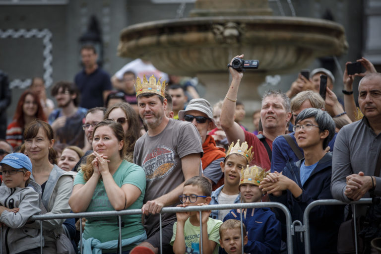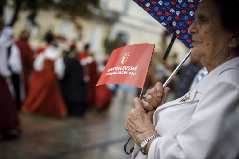 Atmosféra počas slávnostného korunovačného sprievodu v rámci podujatia Bratislavské korunovačné dni 2022 v uliciach hlavného mesta. Bratislava, 30. júl 2022. Foto: SITA/Branislav Bibel.
