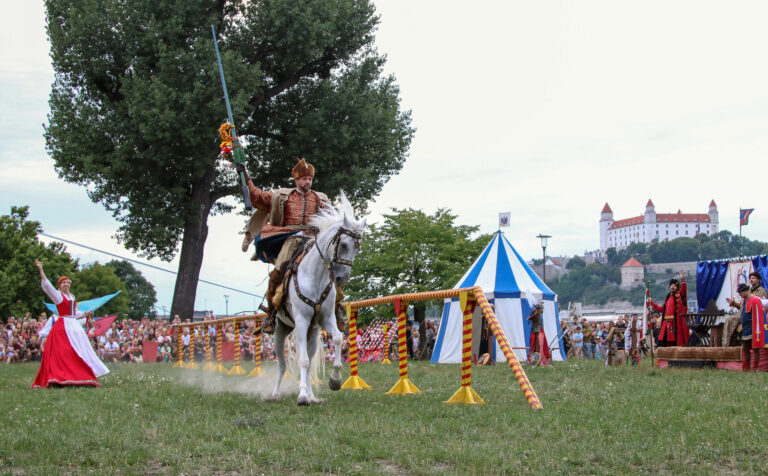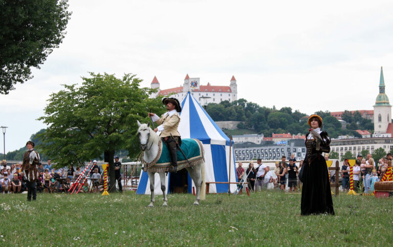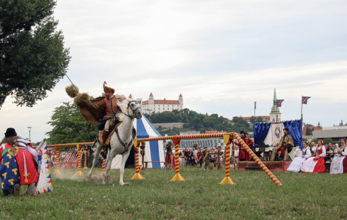 Uhorský rytiersky turnaj počas podujatia Bratislavské korunovačné dni 2025 na Tyršovom nábreží. Bratislava, 25. júl 2025. Foto: SITA/Andrea Mezeiová