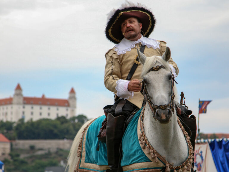 Jazdec na koni na Tyršovom nábreží v rámci podujatia Bratislavské korunovačné dni 2025. Bratislava, 25. júl 2025. Foto: SITA/Andrea Mezeiová
