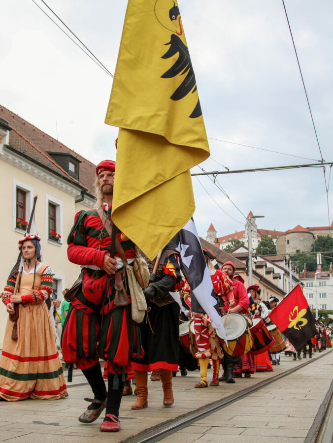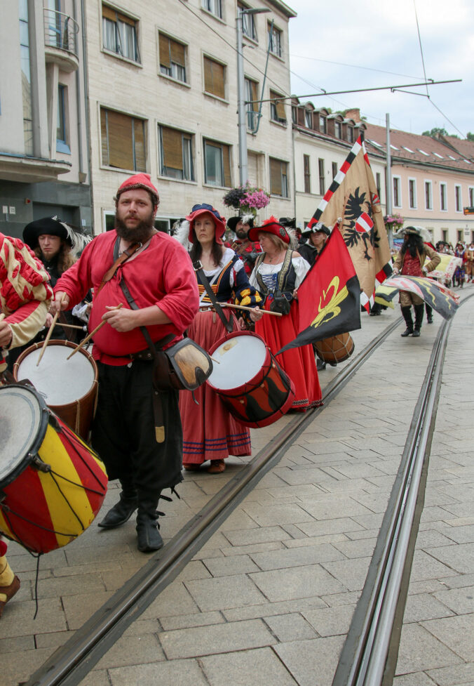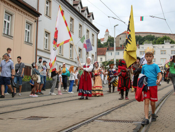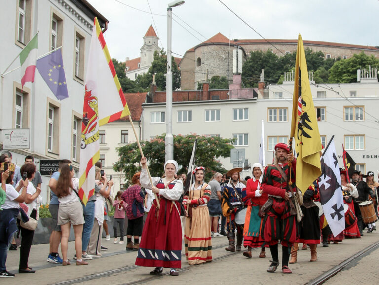 Slávnostný korunovačný sprievod na počesť korunovácie uhorského panovníka Karola III. v roku 1712 počas podujatia Bratislavské korunovačné dni 2025 v uliciach hlavného mesta. Bratislava, 26. júl 2025. Foto: SITA/Andrea Mezeiová