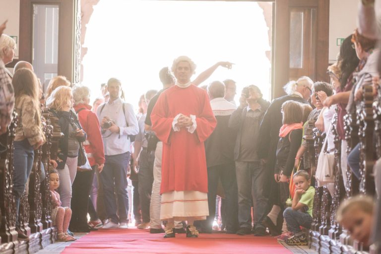 Atmosféra počas obradu korunovácie Leopolda II. v jezuitskom kostole v rámci Bratislavských korunovačných slávností 2018. Bratislava, 23. jún 2018. Foto: SITA/Branislav Bibel