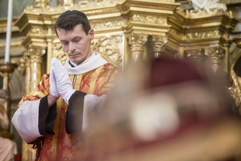Leopold II. počas obradu korunovácie v jezuitskom kostole v rámci Bratislavských korunovačných slávností 2018. Bratislava, 23. jún 2018. Foto: SITA/Branislav Bibel