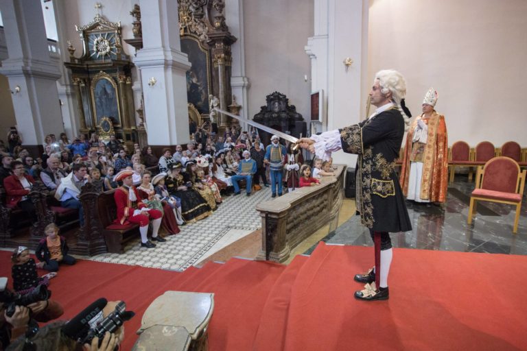 Obrad korunovácie Leopolda II. v jezuitskom kostole v rámci Bratislavských korunovačných slávností 2018. Bratislava, 23. jún 2018. Foto: SITA/Branislav Bibel