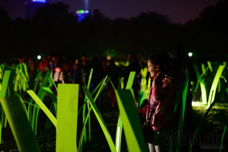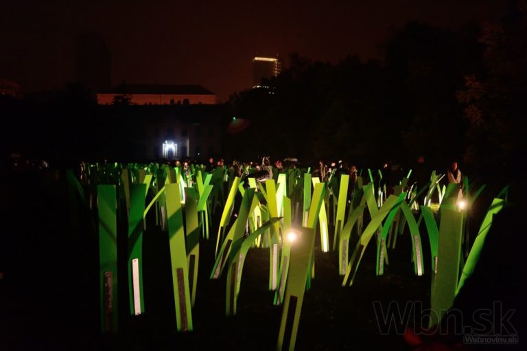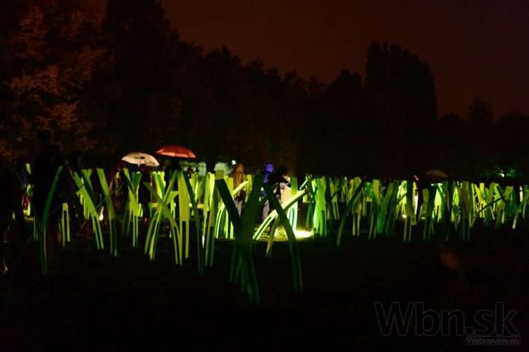Atmosféra v Medickej záhrade počas projektu Biela noc 2015 - Vizuálne atraktívne inštalácie a digitálne umenie v bratislavskom Starom meste. Na snímke: Mechanické pole, ktorého autorom je Vincent Leroy (FR). Bratislava, 10. október 2015 Foto: SITA/Robert Tappert