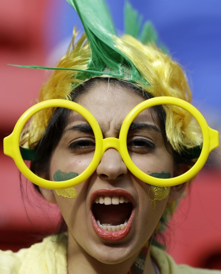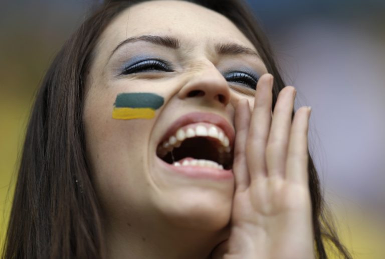 Šarmantná fanúšička Brazílie v hľadisku pred zápasom o tretie miesto na svetovom šampionáte. Foto: SITA/AP