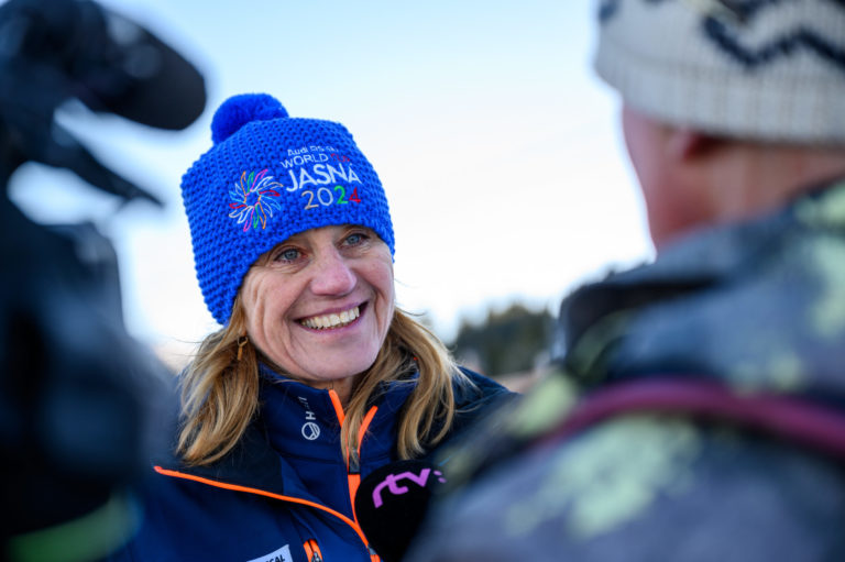 Športová riaditeľka pretekov Svetového pohára v Jasnej 2024 Jana Palovičová počas brífingu pri príležitosti kontroly pretekárskej trate zo strany kontrolného komisára FIS pred konaním Svetového pohára v zjazdovom lyžovaní žien Jasná 2024. Demänovská Dolina, 11. január 2024. Foto: SITA/Milo Fabian