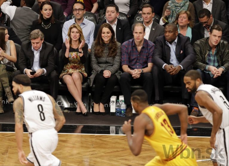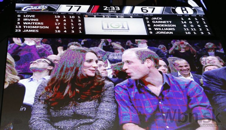 Britský princ William s manželkou Kate sa objavili na obrovskej obrazovke v priebehu NBA basketbalového zápasu medzi Cleveland Cavaliers a Brooklyn Nets v Barclays Center v New Yorku. Foto: SITA/ AP