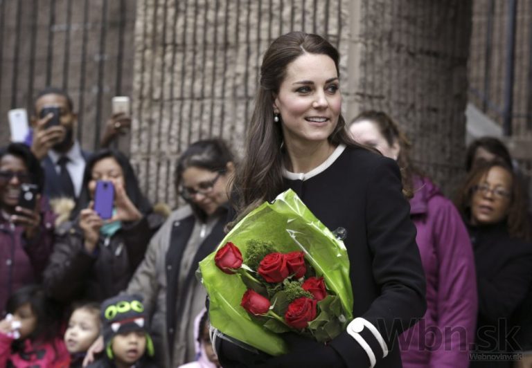 Kate, vojvodkyňa z Cambridgeu, dostala kyticu kvetov po tom, ako navštívila centrum pre prácu s deťmi. USA, New York, 8. decembra 2014. Foto: SITA/AP
