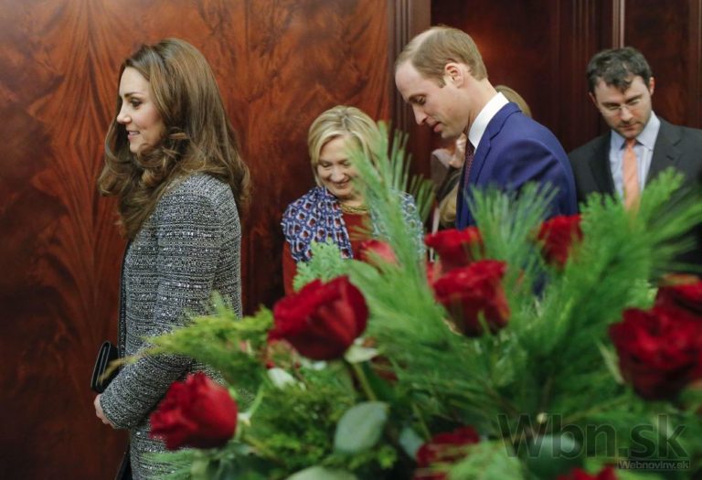Kate, vojvodkyňa z Cambridgeu (vľavo) a princ William (vpravo) prichádzajú s Hillary Clintonovou (uprostred) na recepciu usporiadanú Kráľovskou nadáciou a Clintonovou nadáciou na britskom konzuláte. Spojené štáty, New York, 8. decembra 2014. Foto: SITA/AP