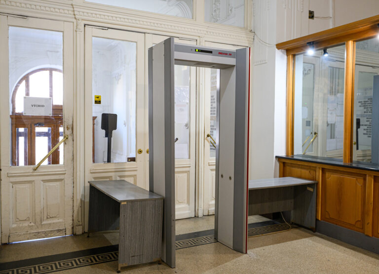 Kontrolný vstup do budovy krajského súdu v Nitre. Nitra, 19. február 2024. Foto: SITA/Martin Havran
