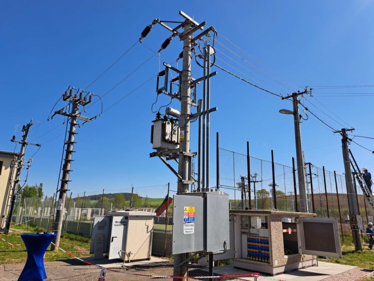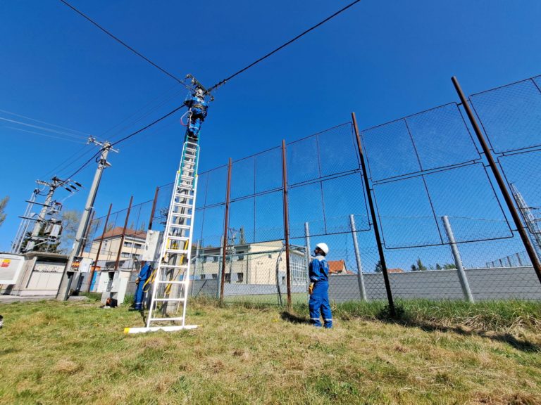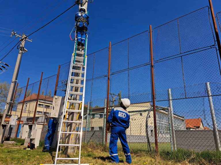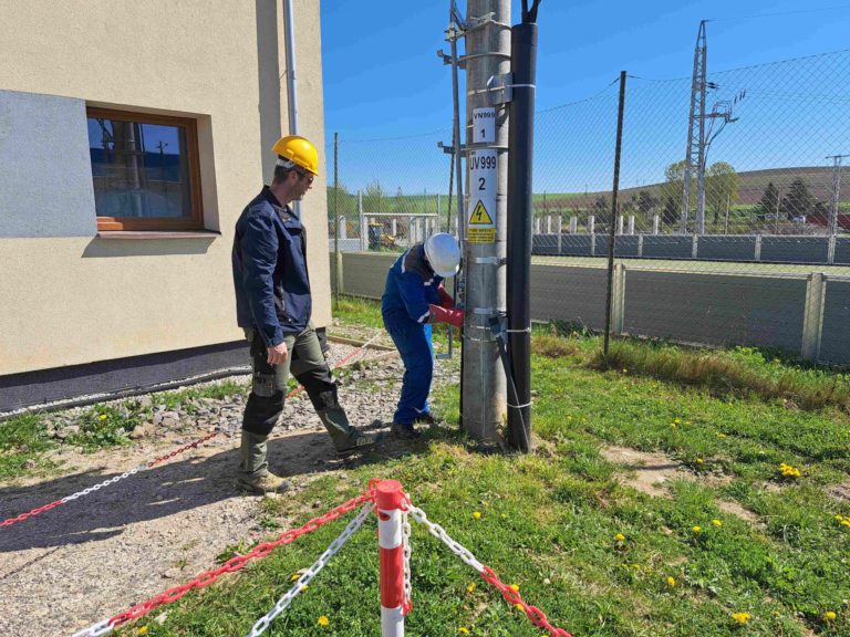 Praktické vyučovanie na cvičnom poli s cvičným energetickým polygónom v areáli Strednej odbornej školy elektrotechnickej v Poprade - Matejovciach, ktorý škola dostala v rámci spolupráce s Východoslovenskou distribučnou založenej aj na duálnom vzdelávaní. Poprad, 30. apríl 2024. Foto: SITA/Mária Frisová.