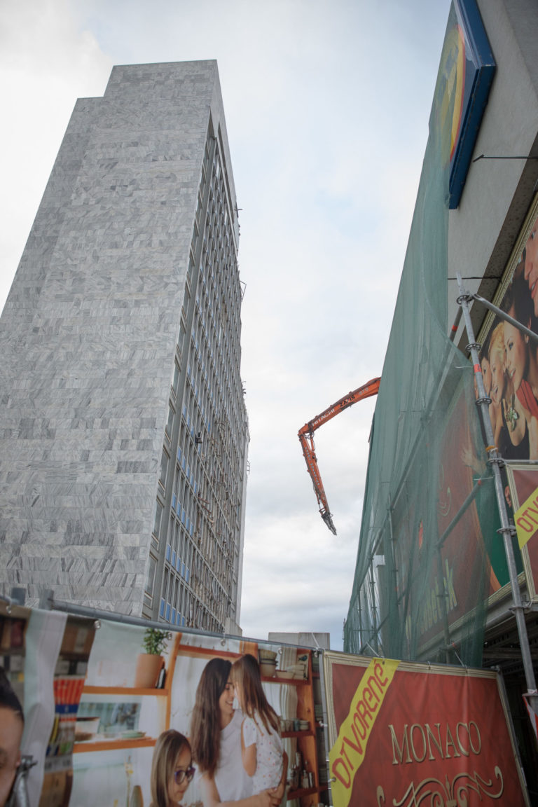 Fontána v átriu Istropolisu počas búrania výškovej administratívnej budovy bývalého Domu Revolučného odborového hnutia (ROH) v rámci prípravy projektu Nový Istropolis na Trnavskom Mýte v Bratislave. Bratislava, 10. október 2022. Foto: SITA/Diana Černáková