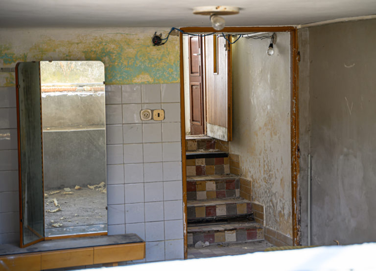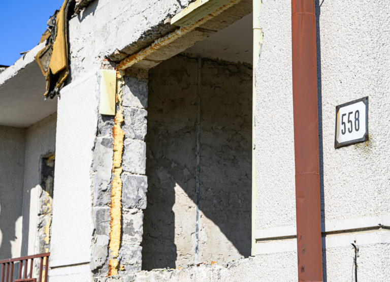 Interiér rodinného domu zavraždeného novinára Jána Kuciaka a jeho snúbenice Martiny Kušnírovej vo Veľkej Mači v okrese Galanta počas začatia búrania ich domu na želanie ich rodičov. Trnavský samosprávny kraj následne na pozemku postaví Pamätník slobody slova. Veľká Mača, 21. marec 2023. Foto: SITA/Martin Havran.
