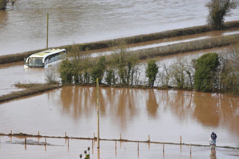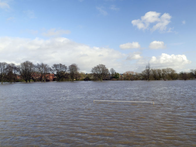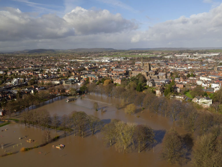 Búrka Dennis cez víkend udrela na Britské ostrovy. Pohľad na mesto Hereford. Foto: SITA/AP, Steve Parsons