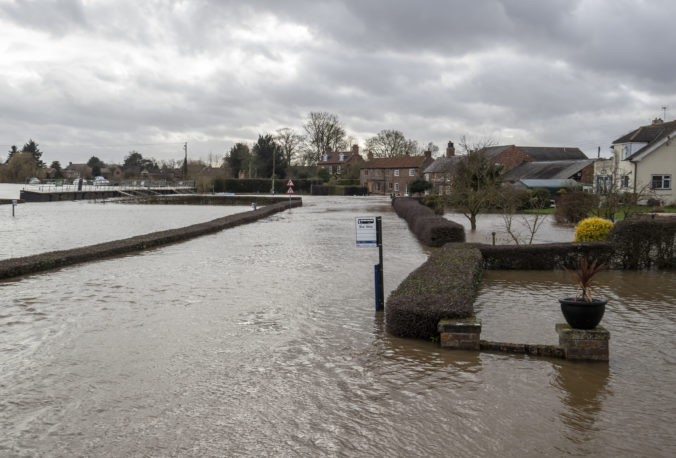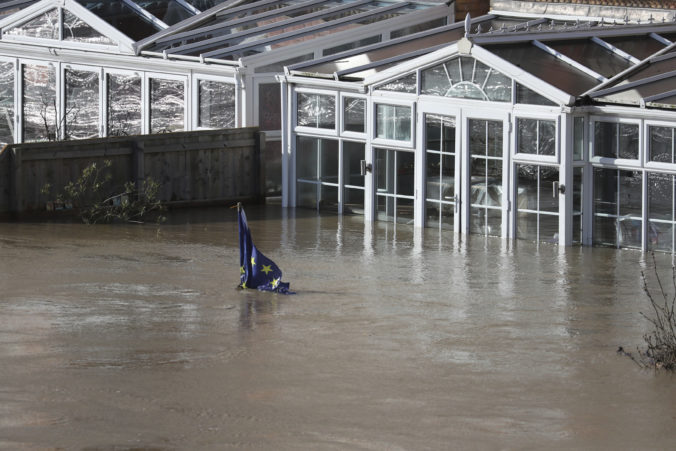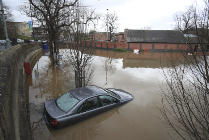 Búrka Dennis cez víkend udrela na Britské ostrovy. Mesto Acaster Malbis. Foto: SITA/AP, Danny Lawson