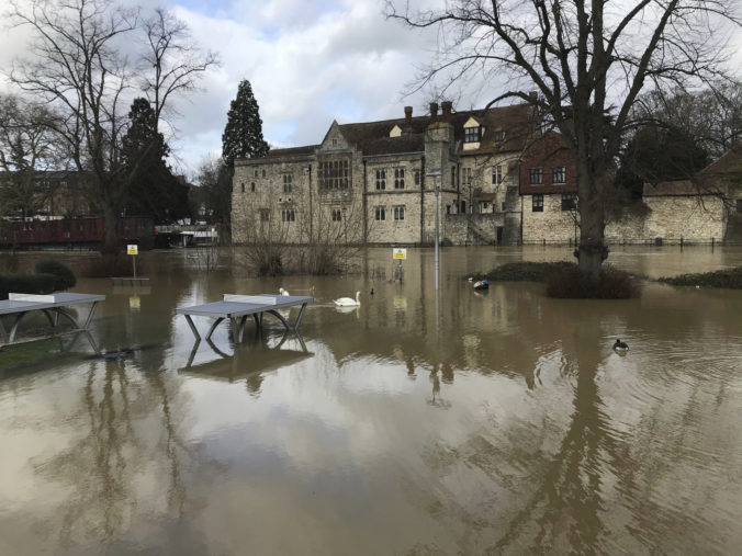 Búrka Dennis cez víkend udrela na Britské ostrovy. Mesto Maidstone. Foto: SITA/AP, Michael Drummond