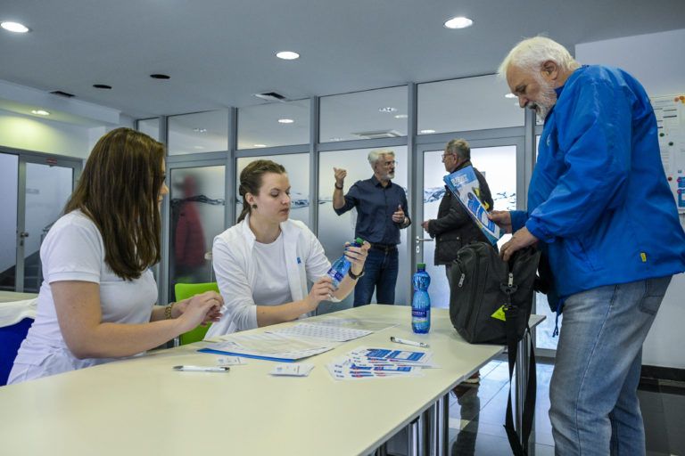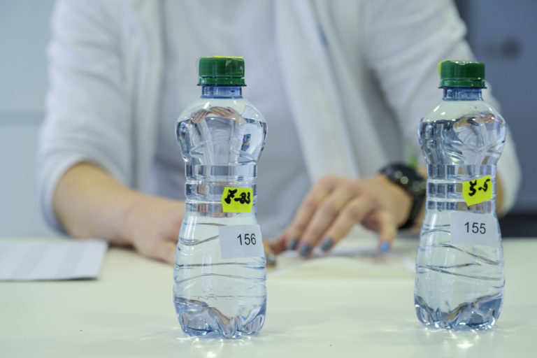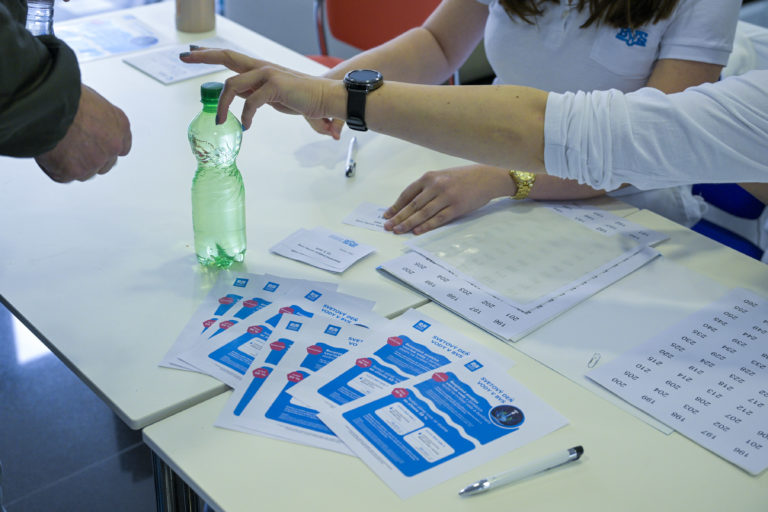 Atmosféra počas preberania prinesených vzoriek vody zo studní v laboratóriách Bratislavskej vodárenskej spoločnosti (BVS) v rámci Svetového dňa vody. Bratislava, 22. marec 2024. Foto: SITA/Milan Illík