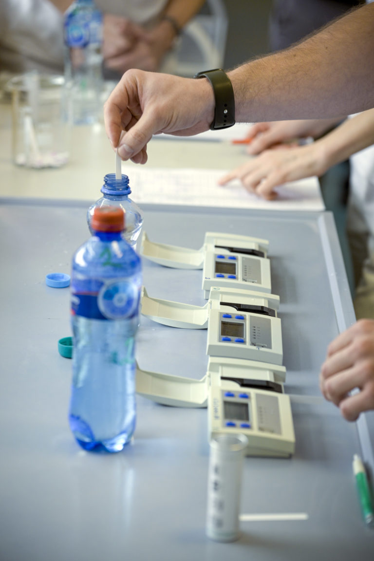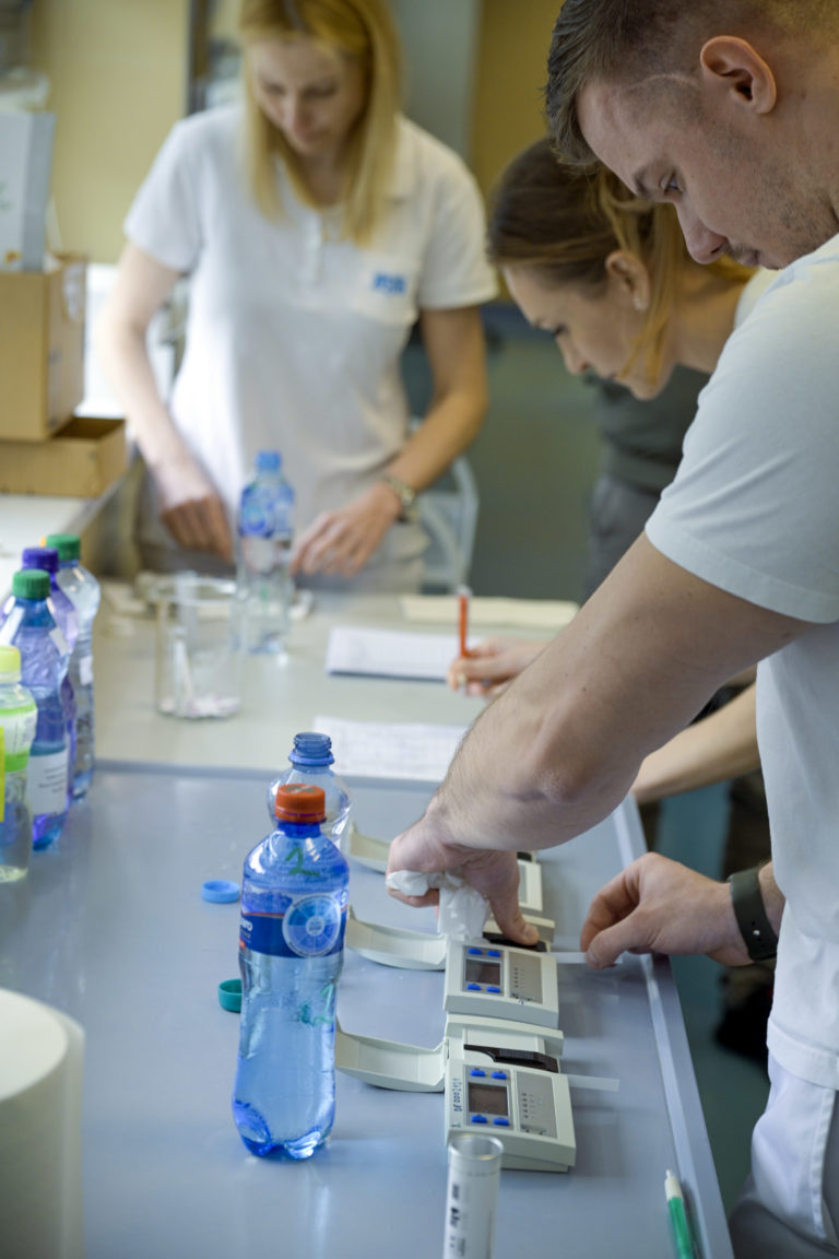 Atmosféra počas analýzy prinesených vzoriek vody zo studní v laboratóriách Bratislavskej vodárenskej spoločnosti (BVS) v rámci Svetového dňa vody. Bratislava, 22. marec 2024. Foto: SITA/Milan Illík