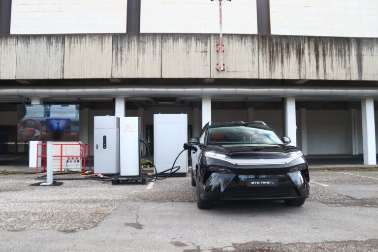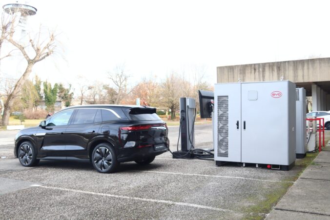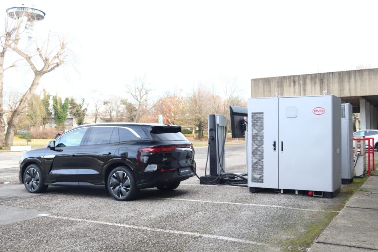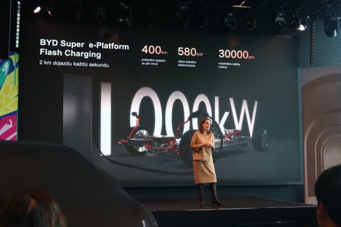 BYD počas prezentácie v Bratislave predviedol aj Flash charging technológiu s nabíjaním s výkonom 1 MW. Foto: SITA/Ján Hargaš