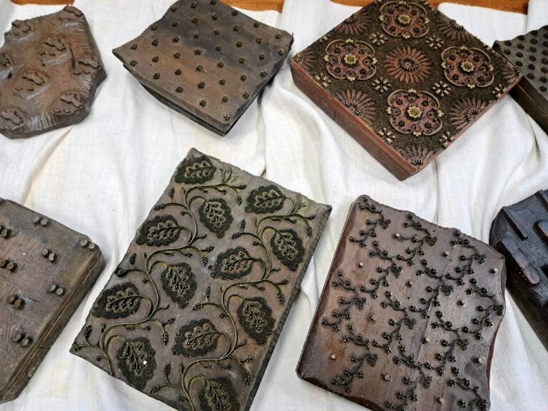 Ukážka matríc na modrotlač z bývalej modrotlačiarenskej dielne v podtatranskej obci Hranovnica, ktoré vlastnil posledný hranovnický modrotlačiar Elemír Montško (1900-1974), dnes zbierkové predmety Podtatranského múzea v Poprade. Hranovnica, 16. október 2024. Foto: SITA/Mária Frisová