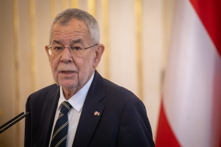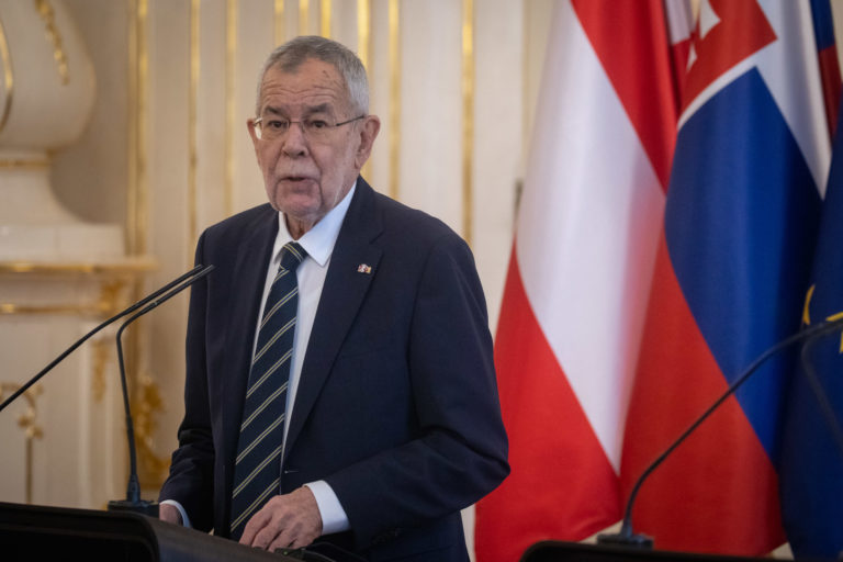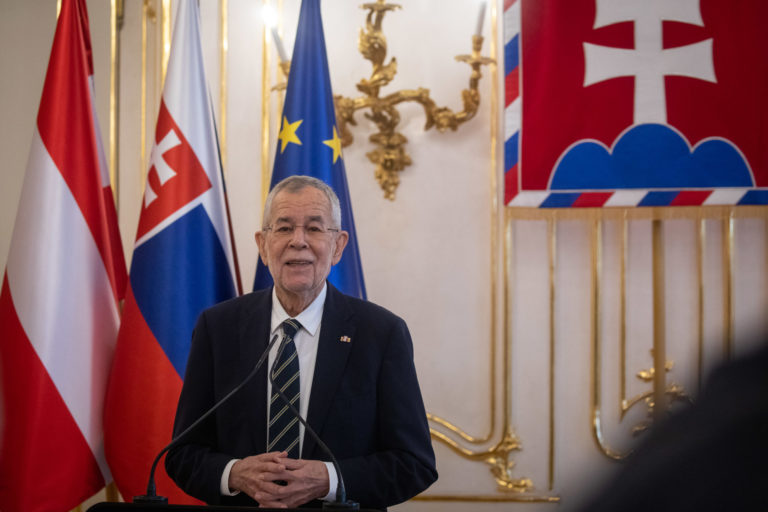 Prezident Rakúska Alexander Van der Bellen počas tlačovej konferencie po prijatí prezidentkou SR v Prezidentskom paláci v rámci oficiálnej návštevy prezidenta Rakúskej republiky na Slovensku. Bratislava, 31. január 2023. Foto: SITA/Diana Černáková