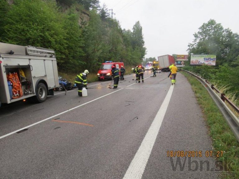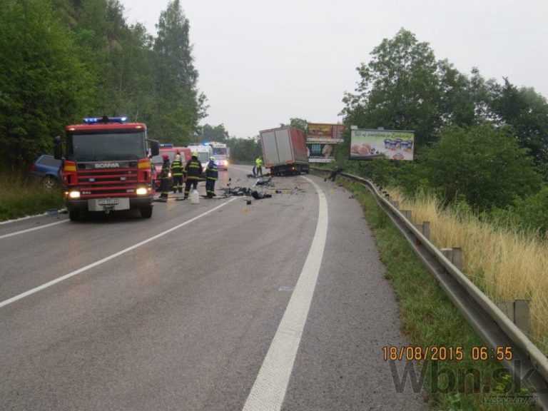 Tragická nehoda sa stala krátko po 06:00 v katastri Strečna. Štyridsaťročný Čech na VW Passat Variant prešiel v zákrute do protismeru a zrazil sa s protiidúcim nákladným Renaultom Midlum. Foto: SITA/KR PZ Žilina