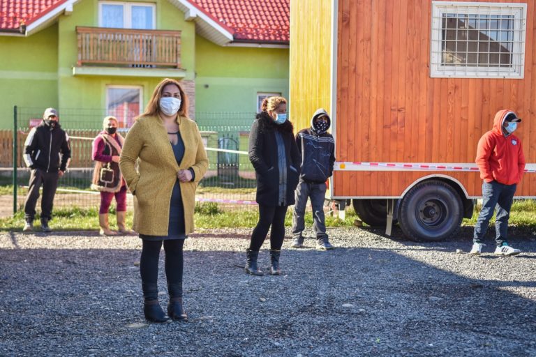 Obyvatelia obce čakajú na vyhradenom mieste na certifikáty v odbernom mieste COVID-19 v rómskej osade v obci Veľká Lomnica počas operácie Spoločná zodpovednosť, ktorá by mala zabezpečiť celoplošné testovanie obyvateľov Slovenska antigénovým testom na COVID-19. Veľká Lomnica, okr. Kežmarok, 31. október 2020. Foto: SITA/Oliver Ondráš.