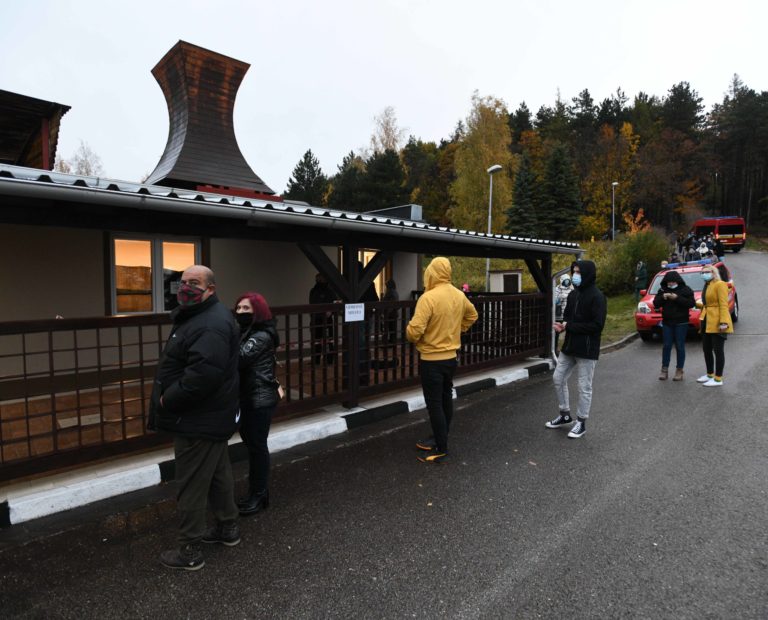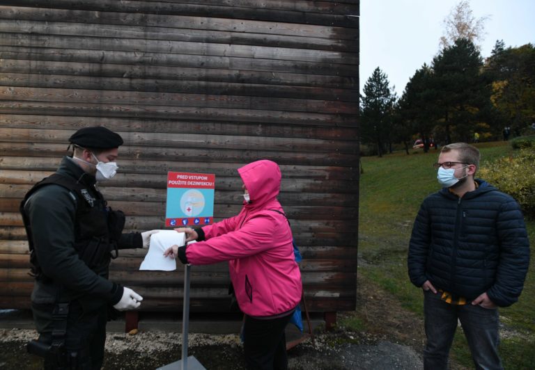 Odberné miesto COVID-19 v Senici - mestskej časti Banskej Bystrice, počas operácie Spoločná zodpovednosť, ktorá by mala zabezpečiť celoplošné testovanie obyvateľov Slovenska antigénovým testom na COVID-19. Banská Bystrica, 31. október 2020. Foto: SITA/Peter Rusko.
