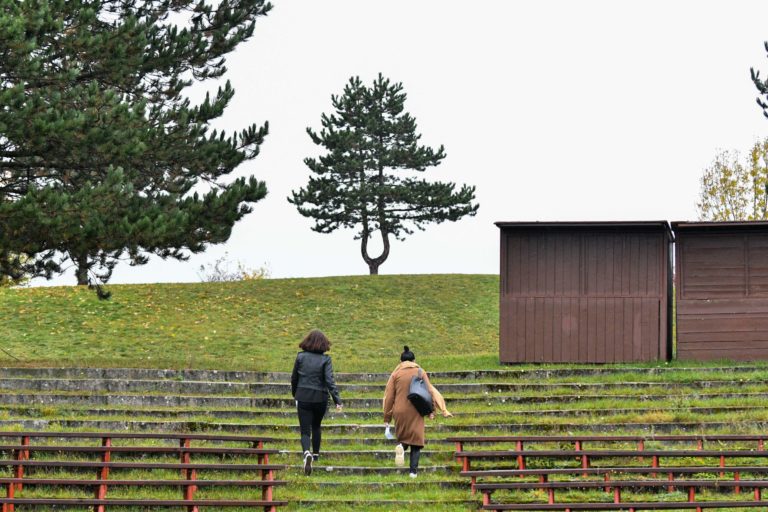 Obyvatelia v obci Lubina v amfiteátri Roh počas operácie Spoločná zodpovednosť, ktorá by mala zabezpečiť celoplošné testovanie obyvateľov Slovenska, antigénovým testom na COVID-19. Stará Turá, 31. október 2020. Foto: SITA/Martin Medňanský.