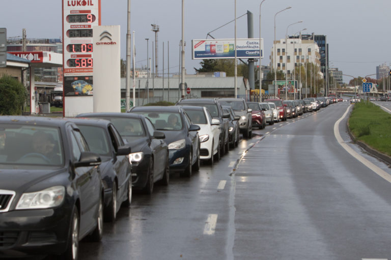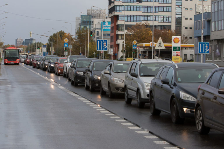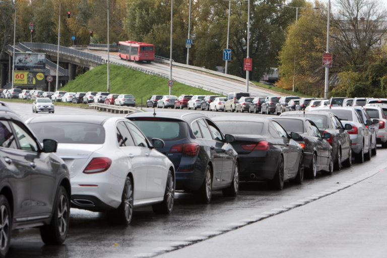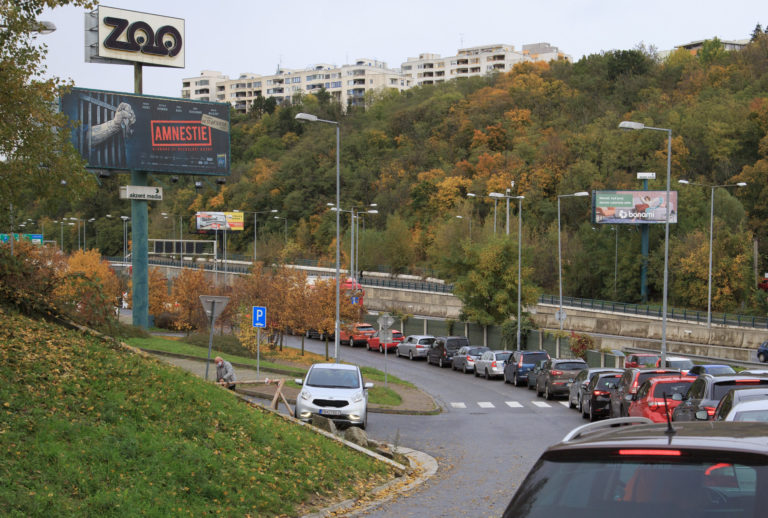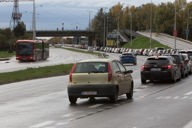 Kolóna áut na odberovom mieste COVID-19 pri ZOO v Mlynskej doline počas operácie Spoločná zodpovednosť, ktorá by mala zabezpečiť celoplošné testovanie obyvateľov Slovenska antigénovým testom na COVID-19. Bratislava, 31. október 2020. Foto: SITA/Branislav Bibel.