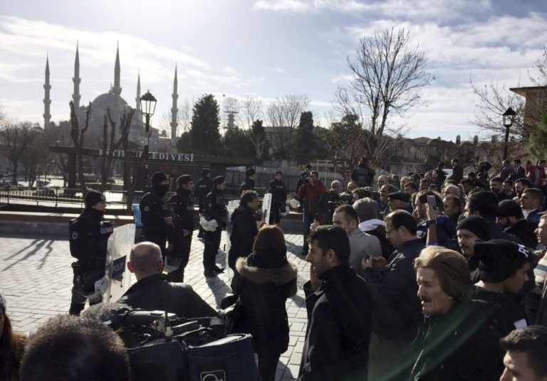 K výbuchu došlo na Námestí sultána Ahmeda v centre Istanbulu neďaleko Modrej mešity hojne navštevovanej zahraničnými turistami. Foto: SITA/AP