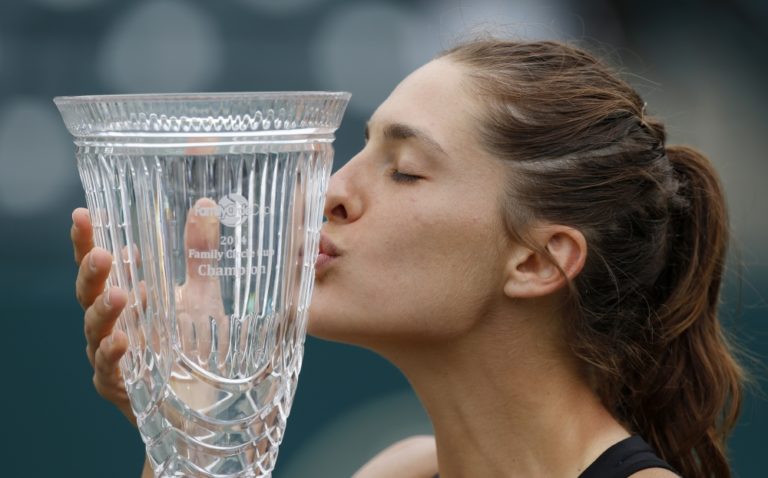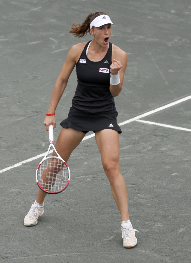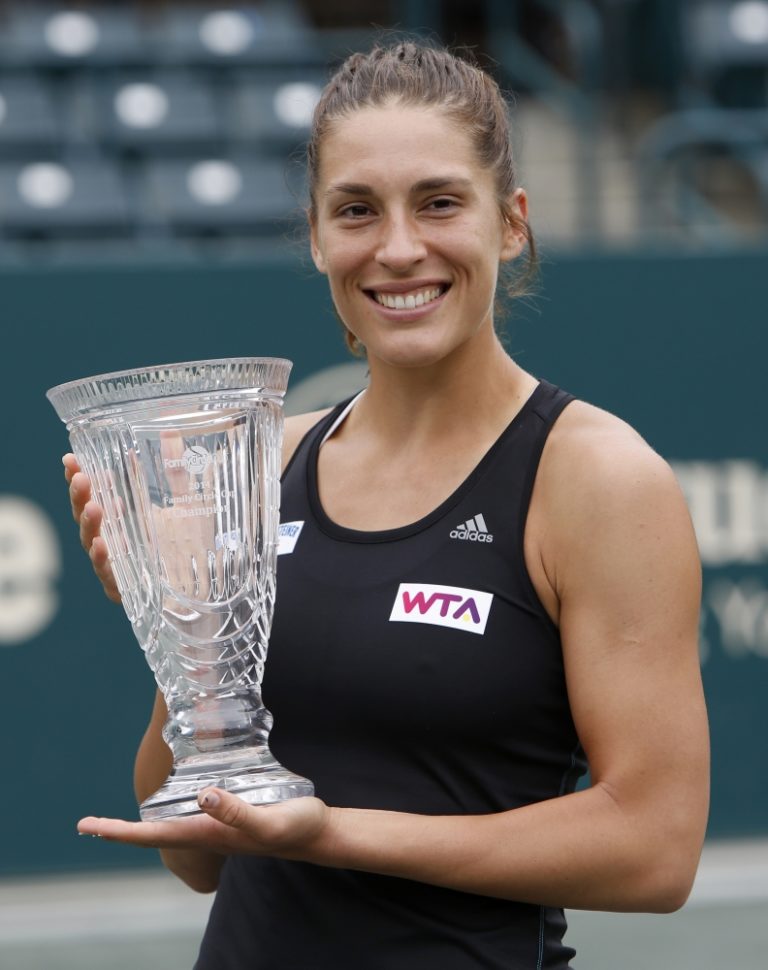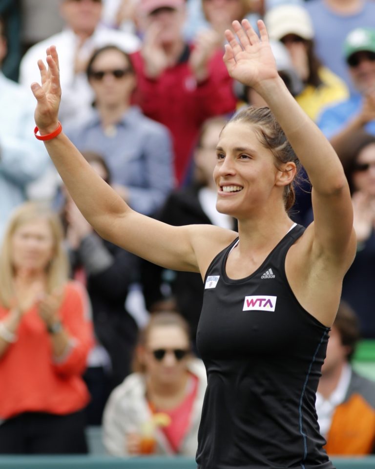 Nemecká tenistka Andrea Petkovicová po finálovom zápase na turnaji v Charlestone, v ktorom porazila Slovenku Janu Čepelovú za 80 minút 7:5, 6:2. Foto: SITA/AP