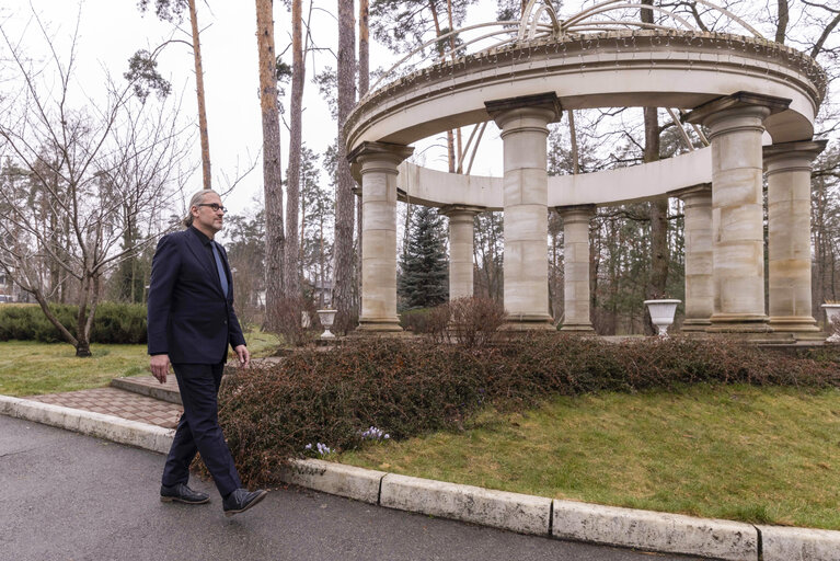 Slovenský europoslanec Martin Hojsík počas návštevy Buče, kde si pripomenul 3. výročie oslobodenia mesta spod ruskej okupácie a zúčastnil sa na tiež na samite v tomto ukrajinskom meste, v Buči 31. marca 2025. Foto: Európsky parlament